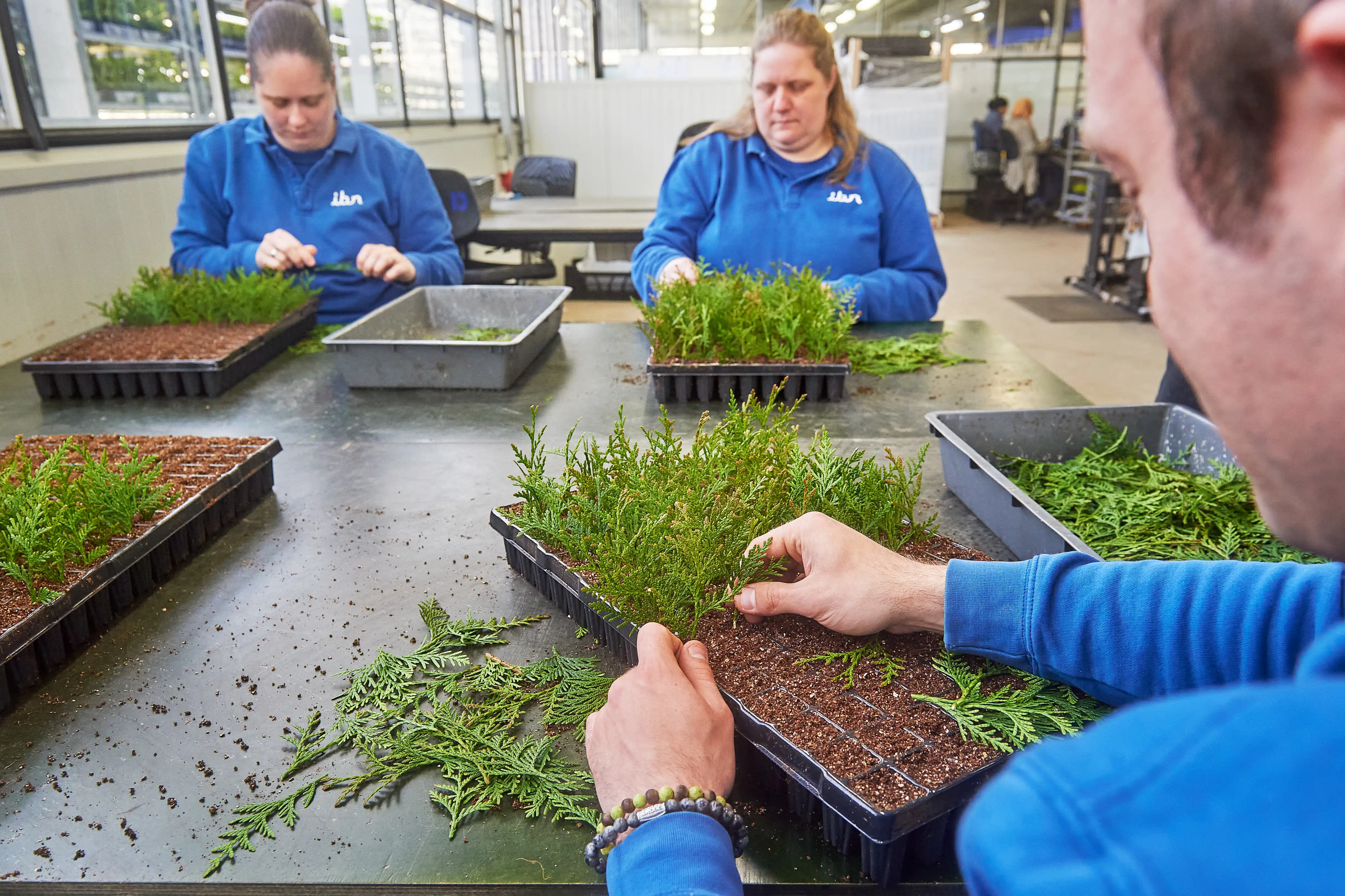 Wir bei IBN sind der Meinung, dass jede und jeder eine vollwertige Arbeit verdient. Einen Ort, an dem wir Menschen Raum geben, um erfolgreich an der Gesellschaft teilzuhaben. Wir verhelfen unseren Leuten zu einer Tätigkeit, die ihrem Tempo und ihrem Können entspricht. Stecklinge aufzuziehen ist eine präzise, fast schon perfektionistische Arbeit, die nicht von irgendeinem Paar Hände erledigt werden kann. Unsere Leute beherrschen das Handwerk. Wir investieren in ihre Qualitäten, um ihren einzigartigen Fähigkeiten gerecht zu werden.