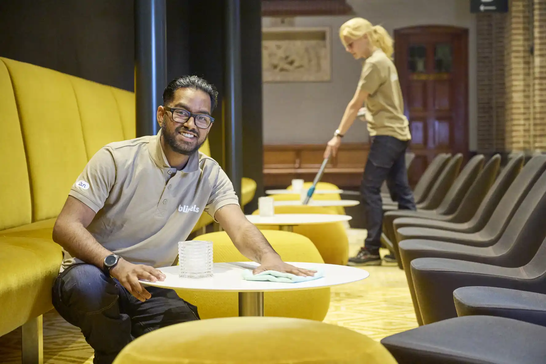 Onze schoonmakers worden onderdeel van jouw team. Ze zorgen dat alles tiptop is, denken mee en passen zich moeiteloos aan – zelfs als je liever buiten kantooruren schoonmaak wilt. Geen probleem, wij regelen het.