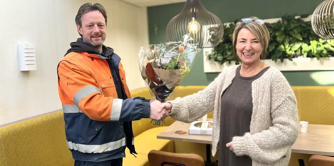Rob Smorenberg, eerste medewerker bij Facilitair van IBN, is verkozen tot één van de tien beste praktijkopleiders voor mbo-studenten in de sector voedsel, groen en gastvrijheid. Uit meer dan 400 praktijkopleiders in Nederland werd Rob verkozen. Maandag 27 februari kwam Anna Straten, Adviseur Praktijkleren van SBB (Samenwerkingsorganisatie Beroepsonderwijs Bedrijfsleven) langs bij IBN om Rob een bos bloemen en een taart te overhandigen voor deze bijzondere nominatie.