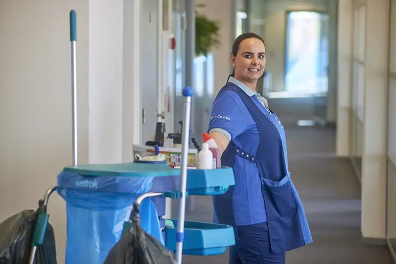 "Het team van de schoonmaak is erg fijn. In het begin loop je vooral mee en leer je hoe je het handigst kunt werken. Je gaat met een doekje over tafels en kasten heen, maakt wc’s schoon en stofzuigt."